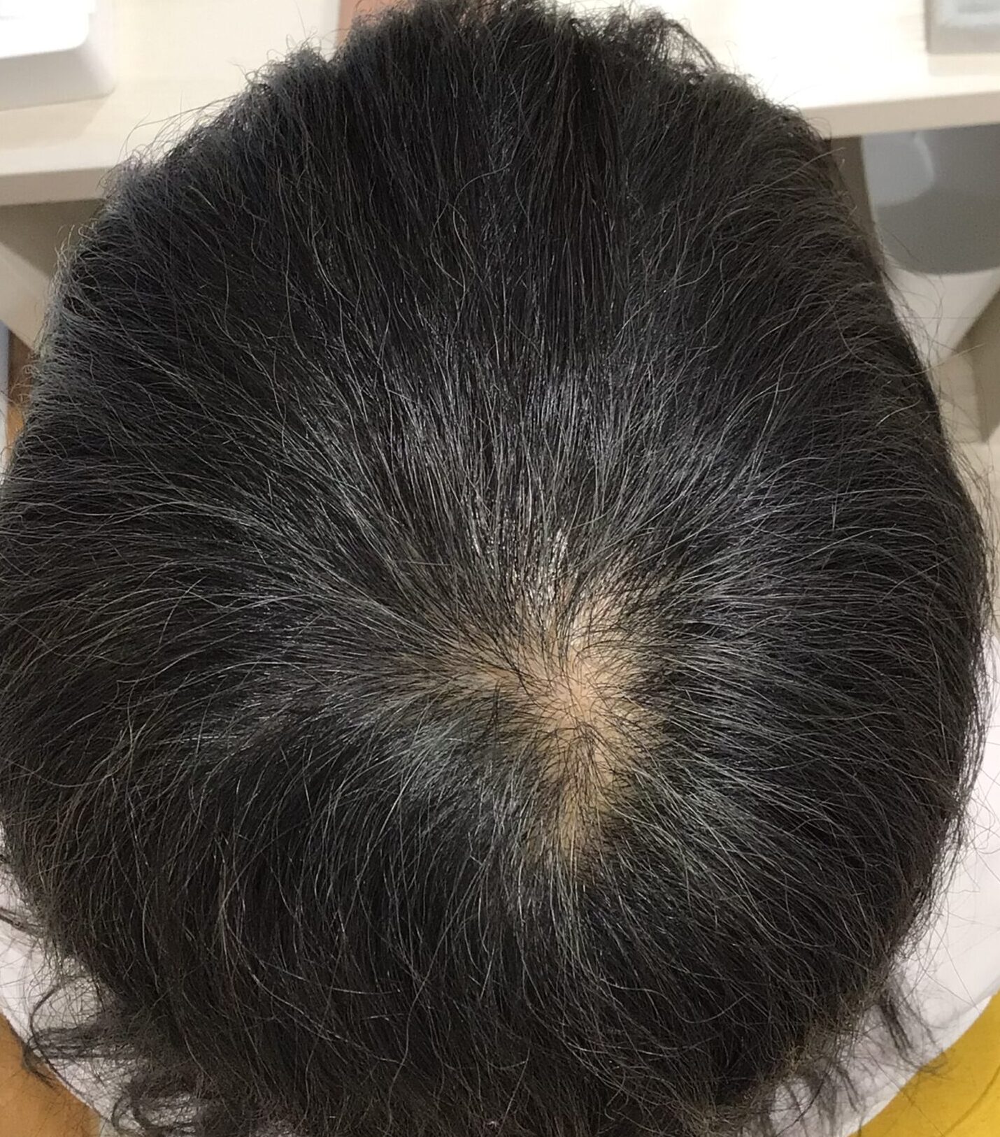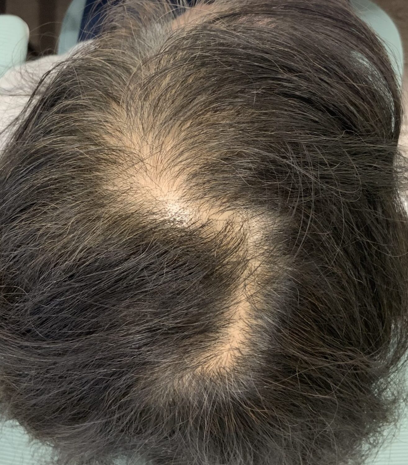 頭頂部の透け感が気になり、数年前に他院で治療を受けられたそうですが、健康診断で腎機能低下を指摘されたことや、治療中に冷え性が悪化したこともあり、クリニックに対する不安から治療を中断されたとのことでした。